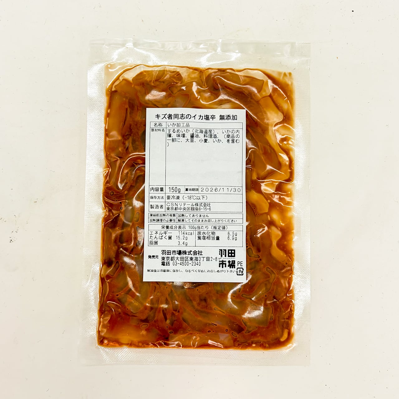 傷者同士のいか塩辛 無添加 150g入 500円(税別)
