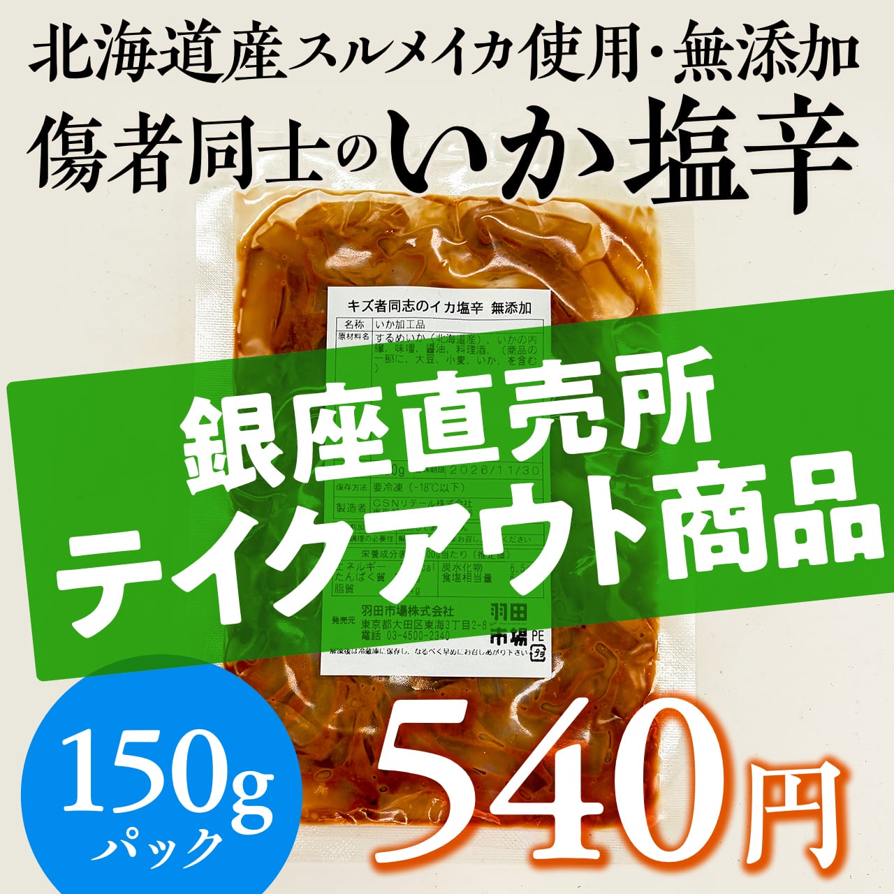 (1059)銀座直売所テイクアウト【数量・期間限定】傷者同士のいか塩辛 無添加 150g入