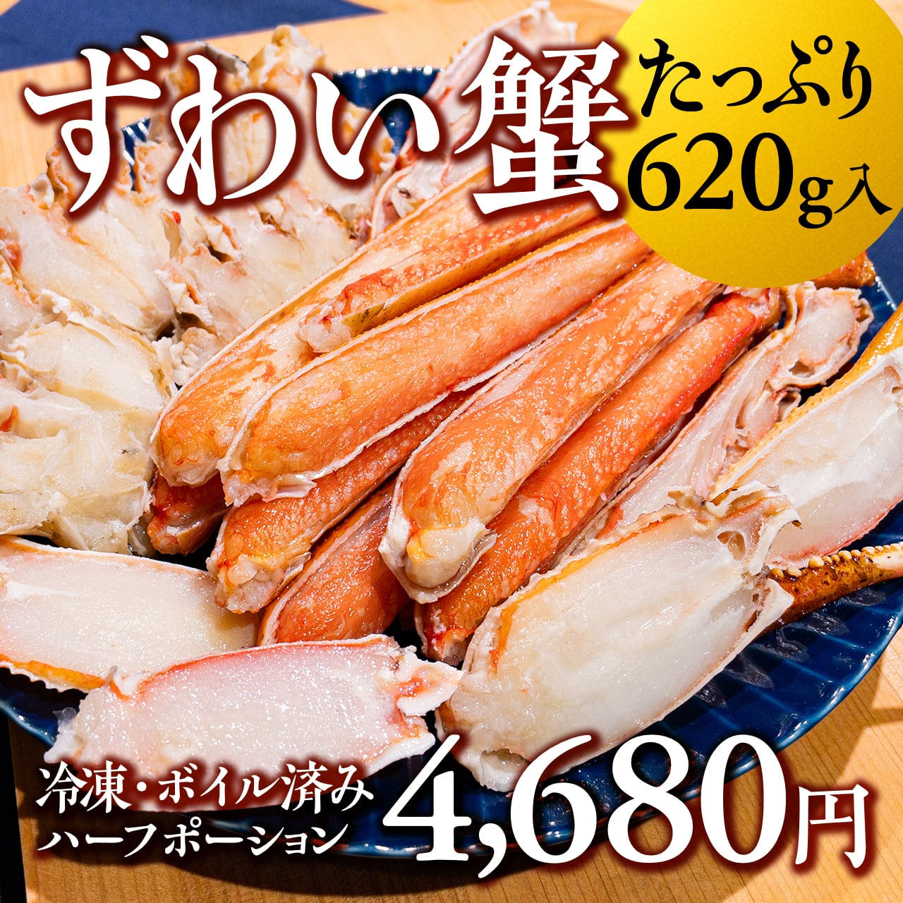 冷凍ボイルずわい蟹ハーフポーション650gは、手間いらずで豪華な食事が楽しめる一品です。