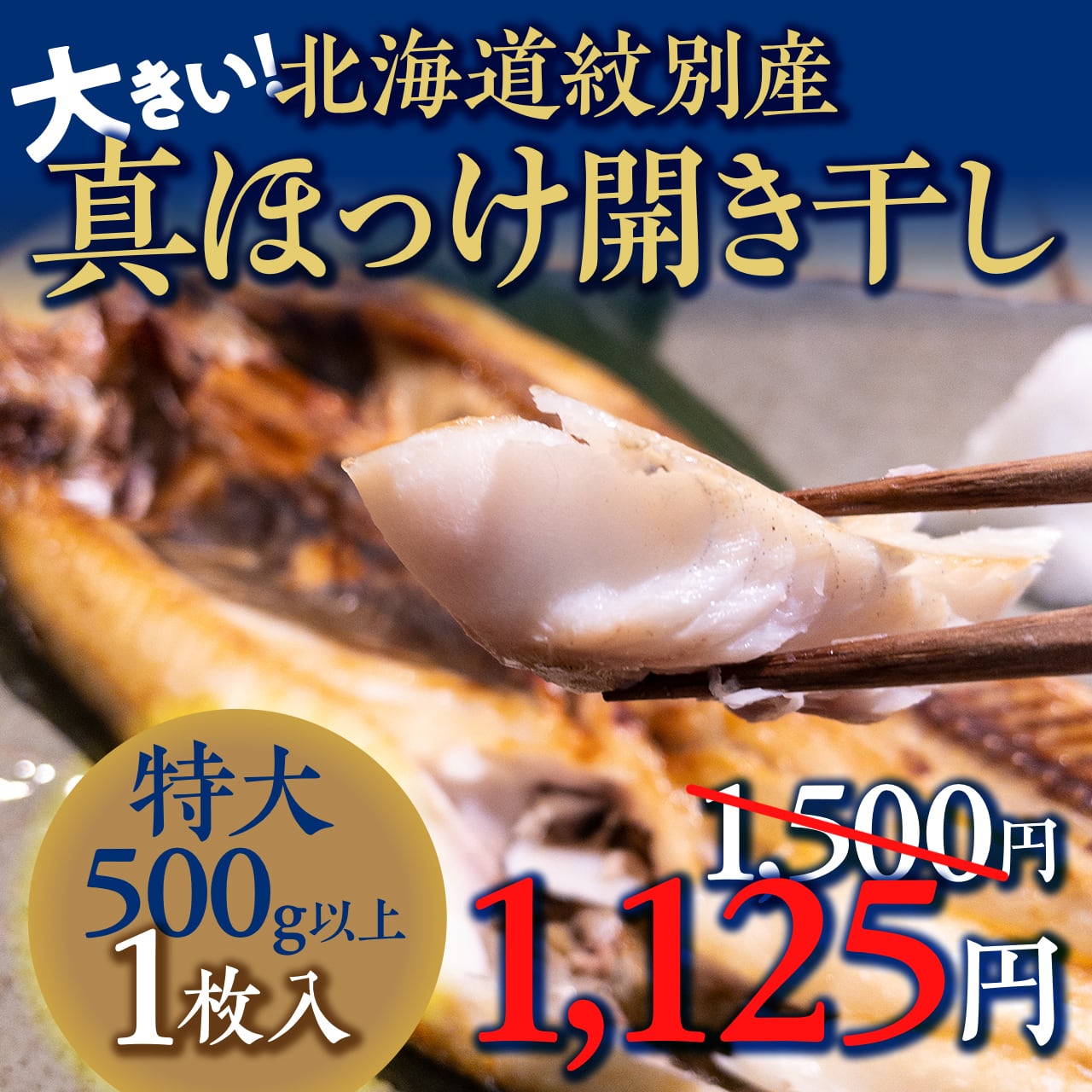 (0835)北海道紋別産 大きい!真ホッケ(特大)開き干し500g以上(冷凍・1枚)