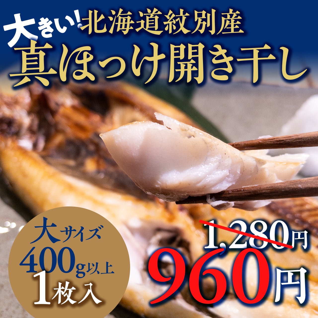 (0836)北海道紋別産 大きい!真ホッケ(大)開き干し400g以上(冷凍・1枚)